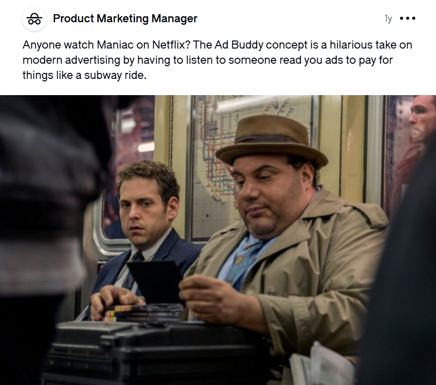 The television series Maniac presents a dystopian reality in which it is possible to earn credits by passively listening to advertisements through an “ad-buddy”. This is the brutal representation of the social cost of marketing: an absorption of surplus, an anti-productive product, a thermodynamic loss of human culture.