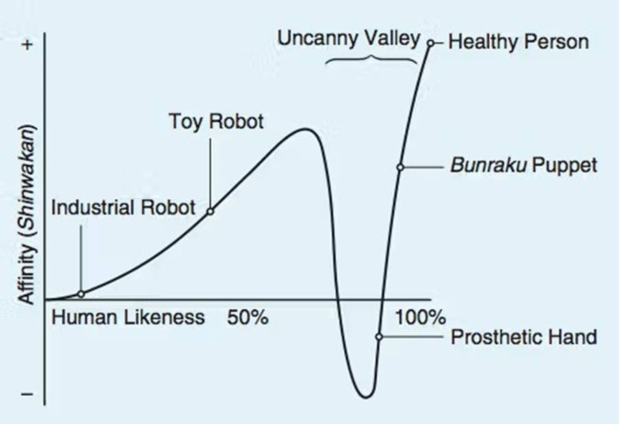 The concept of Uncanny Valley – theorized by the roboticist Masahiro Mori in 1970 – describes that emotional breakdown that transforms empathy into repulsion when an artificial entity looks too much like a human being without being able to be perfectly so. It is the area of the “almost-alive” (zombies, corpses, imperfect androids) that generates deep anxiety.